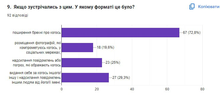 • кібербулінг (приниження за допомогою мобільних телефонів, Інтернету, інших електронних пристроїв).