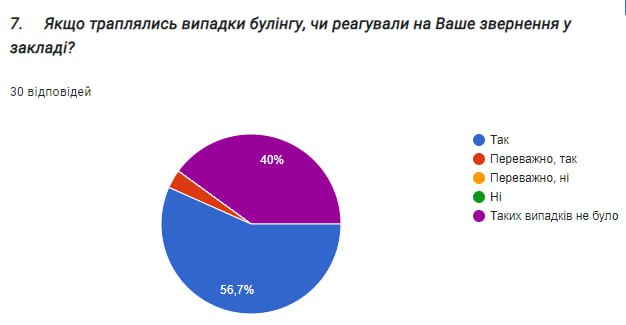 • Проводиться повне та неупереджене розслідування щодо випадків булінгу (цькування) з залученням осіб від яких отримали інформацію